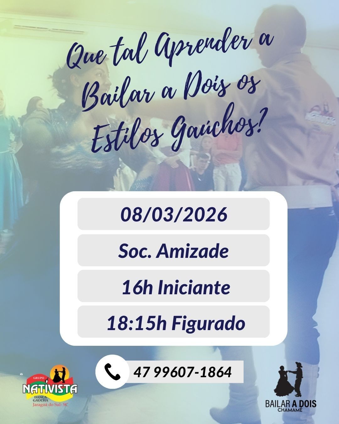Bailar a Dois é o nosso projeto de dança online, onde ensinamos os Casais a Dançar os Estilos Figurados da Dança Gaúcha, com ênfase no nosso querido Chamamé.