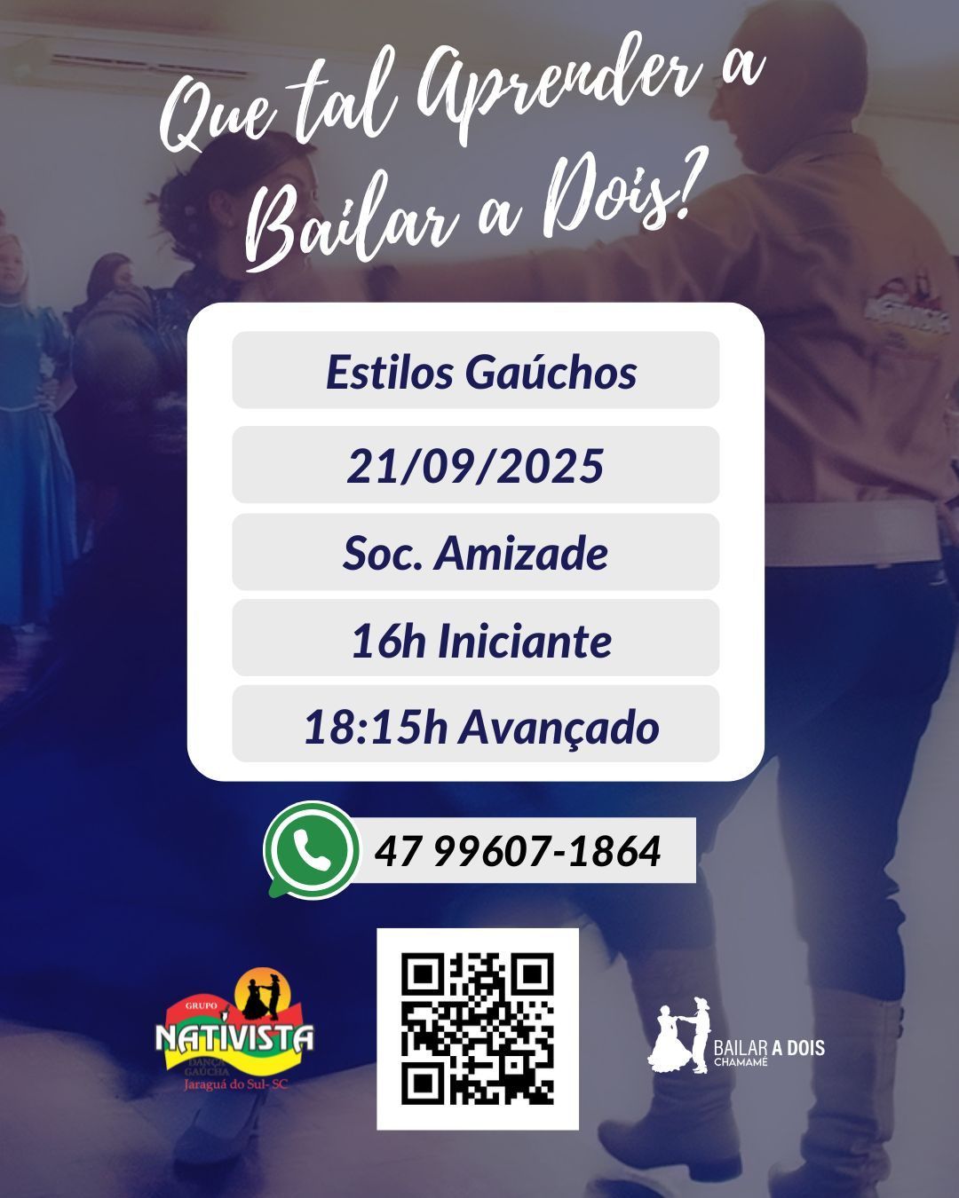 Os ritmos que ensinamos são: Vanera, Vanerão, Milonga, Xote, Valsa, Bugio, Rancheira, Marchinha, Chamamé e Polonesia, ensinando desde os primeiros passos e evoluindo nas figuras gaúcha, seja você iniciante ou não da sua dança!